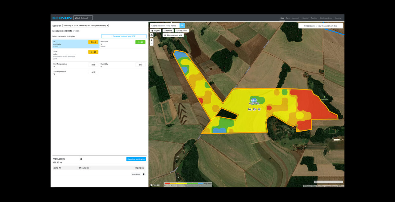 O WebApp da Stenon converte dados de solo em decisões inteligentes e práticas. Com funcionalidades que vão desde a análise da composição de nutrientes e mapeamento de campo até o monitoramento de tendências do solo e geração de recomendações regionais para aplicação de fertilizantes, nossa plataforma oferece as ferramentas necessárias para otimizar o uso de insumos, reduzir custos e aumentar a produtividade.