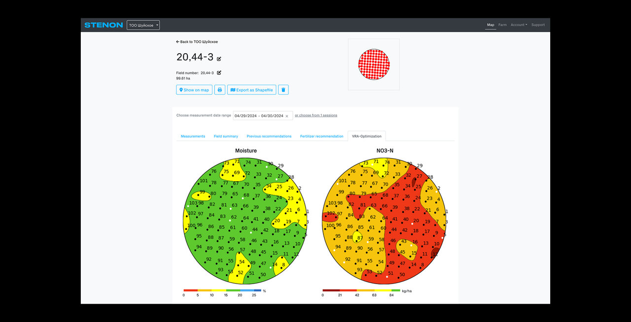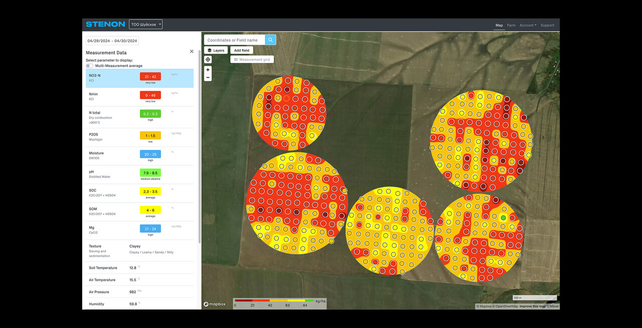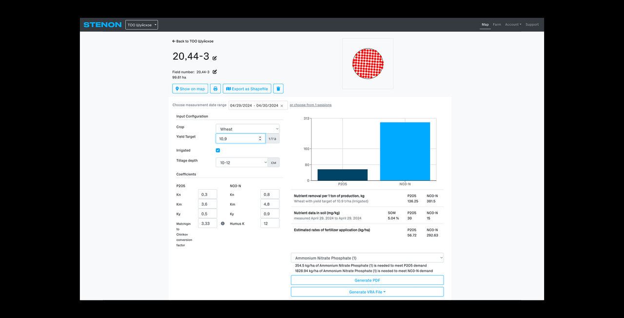 Программное обеспечение Stenon преобразует данные о почве в полезные рекомендации, адаптированные к уникальным потребностям Центральной Азии. От анализа питательных веществ и создания картограмм до отслеживания изменений почвы и рекомендаций по внесению удобрений — наша платформа помогает аграриям оптимизировать использование ресурсов и повышать эффективность. Данные легко экспортируются или интегрируются в существующие системы для упрощения работы.